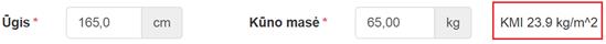 KMI – automatiškai apskaičiuojamas pagal formulę: KMI =