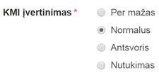 KMI įvertinimas – automatiškai priskiriama reikšmė pagal