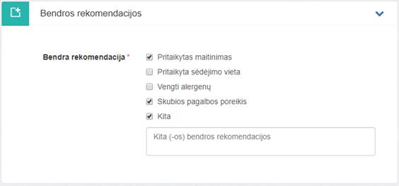 žemiau atsiradusį tekstinį lauką „Kita (-os) bendros rekomendacijos“.