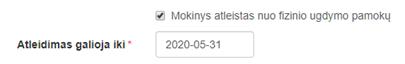 Mokinys atleistas nuo fizinio ugdymo pamokų.