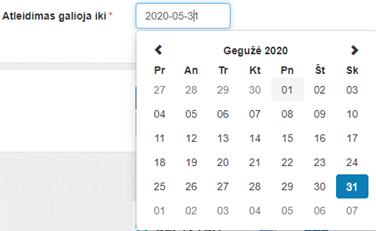 Atleidimas galioja iki – laukas matomas ir privalomas