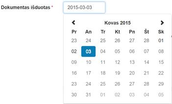 redaguojamas. Nurodyta data turi būti vėlesnė už dokumento išdavimo datą.