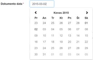 Dokumento data – įvedama ar pasirenkama iš kalendoriaus