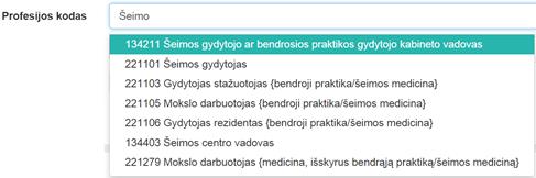 Profesijos kodas – lauke įvedamas profesijos kodas ir