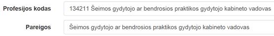 Pareigos – automatiškai užpildomas profesijos pavadinimu
