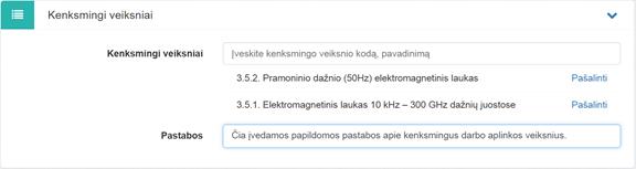 Pastabos – kenksmingų veiksnių pastabos. Leidžiama įvesti