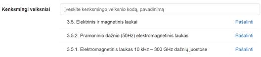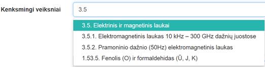 kodas. Vedant kenksmingo veiksnio pavadinimą ir/arba jo kodą arba kurio nors jų