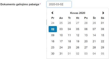 Dokumento galiojimo pabaiga – laukas automatiškai