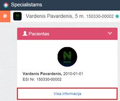Kortelėje Pacientas paspausti nuorodą Visa informacija.