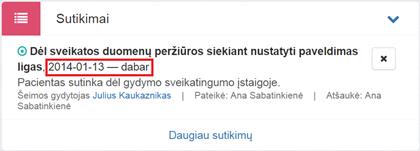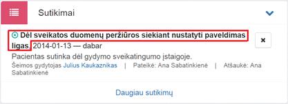 Meniu Sulieti paskyrą rodomas tik pacientui, kuriam nenurodytas