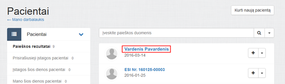 kortelės Paciento paieška pacientas ieškomas Pacientų