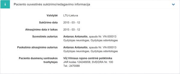Suvestinės autorius – paciento duomenų santraukos