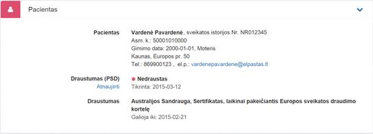 pacientą, užpildomi automatiškai ir neredaguojami: vardas, pavardė, ESI