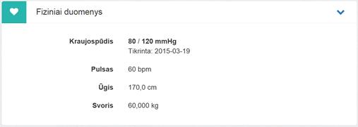 12. Fiziniai duomenys. Bloke matoma informacija imama iš naujausio pasirašyto neatšaukto E025 arba E003 dokumento. Taigi, jei naujausiame E025 ar E003 dokumente duomenys nebuvo suvesti, bloke taip pat nebus matomi paciento fiziniai duomenys, net jei jie buvo suvesti ankstesniame E025 ar E003 dokumente.