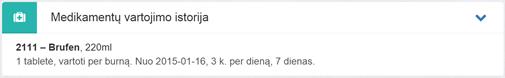 17. Medikamentų vartojimo istorija. Sąrašas užpildomas duomenimis iš vaistų skyrimų, kurie išrašyti pasirašytų neatšauktų E025 ir E003 dokumentų pagrindu. Vaistų skyrimai į ESPBI IS pateikiami iš e. recepto posistemės (recepto posistemės funkcionalumo aprašymą žiūrėkite skyriuje 5 Specialistų portalo e. receptų posistemė). Matoma informacija apie vaistą: bendrinis vaisto pavadinimas arba ekstemporalaus vaisto veikliosios medžiagos, veikliosios medžiagos kodas, stiprumas, vienkartinė dozė, vartojimo būdas, vaistų vartojimo pradžios data, vartojimo dažnumas, vartojimo trukmė dienomis.
