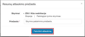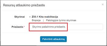 5. Įvesti skyrimo pašalinimo (resurso atšaukimo) priežastį.