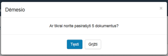 kurie rodomi ekrane. Dialoge parodomas pasirašomų dokumentų skaičius.
