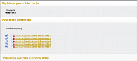 Į pasirašomų dokumentų paketą įtraukiami tik tie dokumentai,