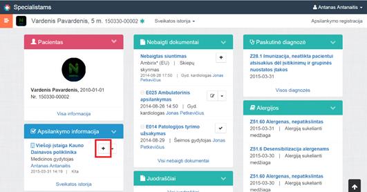 1.1. Atidaryti paciento kortelės puslapį (plačiau skaityti skyriuje 4.2 Paciento paieška).