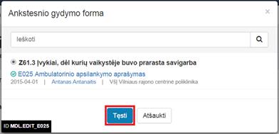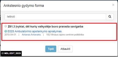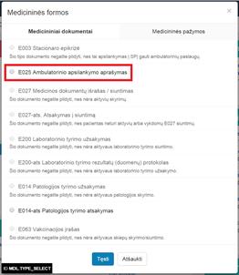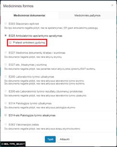 1.7. Pasirinkti E025 dokumentą, su kuriuo reikia susieti kuriamą dokumentą.