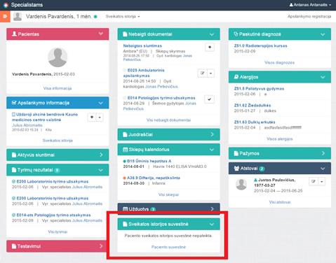 Iš kortelės Sveikatos istorijos suvestinė: