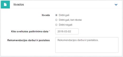 2.2. Užpildyti reikiamą bloko Išvados informaciją. Pildymo rekomendacijas žr. skyriuose 0