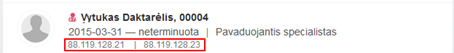 Specialisto atstovo IP adresas. Rodomi visi IP adresai,