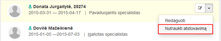 Pavaduojantys specialistai – atstovai, kuriems nurodytas