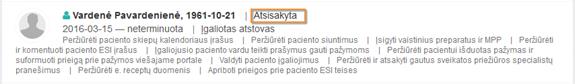 37 paveikslas. Paciento atstovavimų puslapis.