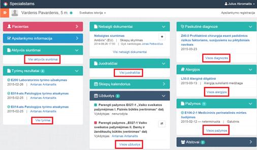 Plačiau apie paciento kortelės lange esančias korteles skaityti skyriuje 4.6 Paciento kortelė.