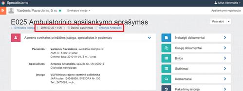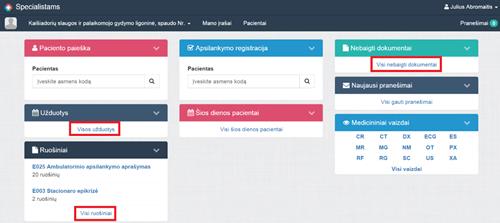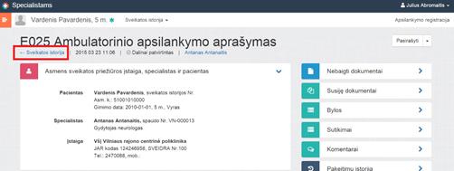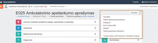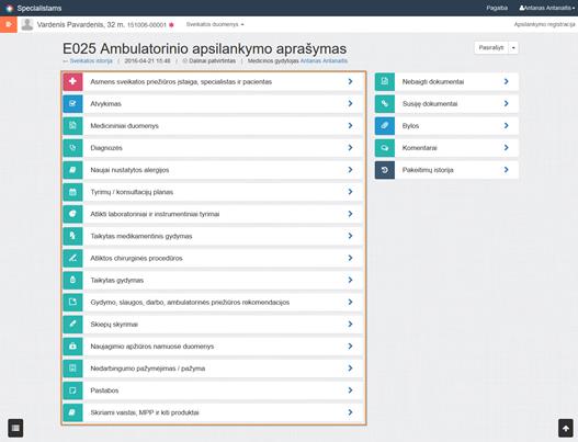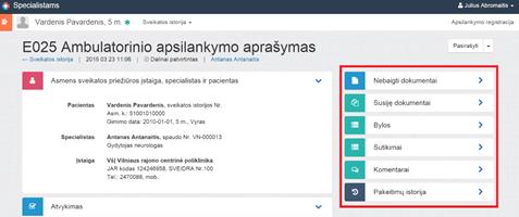 sukurti elektroninius medicininius dokumentus, bei mygtukai, iškviečiantys su
