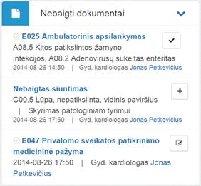 Paciento nebaigti dokumentai (plačiau skaityti skyriuje 4.24.2 Peržiūrėti