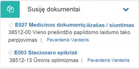 • E003 „Stacionaro epikrizė“. Kai E027 sukurtas E003 dokumento pagrindu (ne pagal skyrimą).