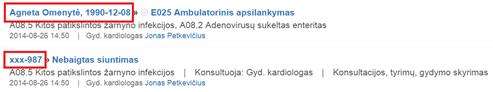 Iš paciento kortelės juostos. Paciento kortelės juostoje