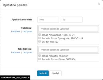 3. Atsidariusiame modaliniame lange Išplėstinė paieška nurodyti paieškos parametrus.