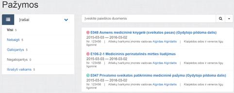 Galiojantys – visos medicininės pažymos, kurių būsena pasirašytas