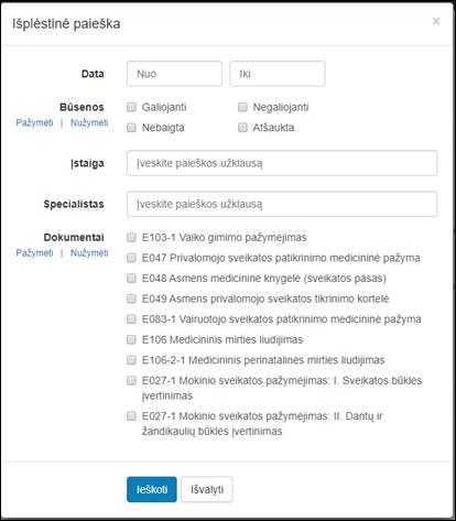 Išplėstinė paieška leidžiama pagal šiuos parametrus:
