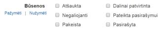 Būsenos – leidžiama pasirinkti vieną ir daugiau iš būsenų: