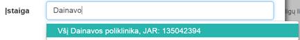 JAR kodą, sistema siūlo pasirinkimus iš ESPBI IS įstaigų katalogo. Įstaiga