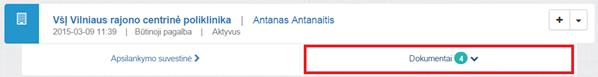 1.1. Išskleisti apsilankymo dokumentus (jei jie dar neišskleisti) prie apsilankymo, kuriame registruotą dokumentą reikia peržiūrėti, paspaudus Dokumentai.