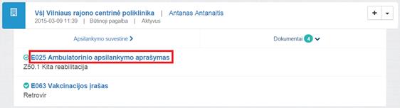 5.2. Ambulatorinis apsilankymas – apsilankymai, susieti su E025 medicininiu dokumentu.