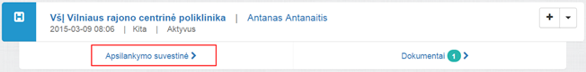 2.1. Išskleisti apsilankymo suvestinę (jei ji dar neišskleisti) prie apsilankymo, paspaudus Apsilankymo suvestinė.
