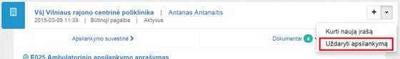 Prie apsilankymo, kuriam reikia sukurti dokumentą, paspausti