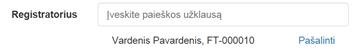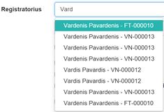 vardą, pavardę, spaudo Nr. įvedus vardo, pavardės ar spaudo Nr. dalį, rodomi