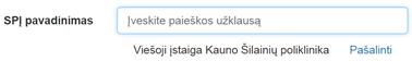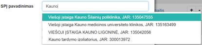 Vedant lauke įstaigos pavadinimą, rodomi pasirinkimai pagal įvestą užklausą.