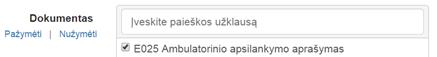 Pažymėti galima pažymėti visus dokumentas, Nužymėti – nuimti