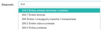 jos TLK-10-AM kodą iš diagnozių klasifikatoriaus. Vedant diagnozės pavadinimą