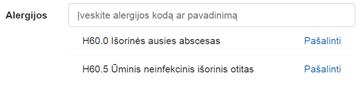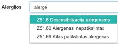 jos TLK-10-AM kodą iš alergijų klasifikatoriaus. Vedant alergijos pavadinimą