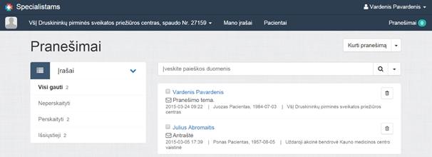 Visi pranešimai pažymimi.