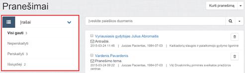 3.4. Tekstas – lauke įvesto žodžio arba frazės ieškoma visų paciento gautų pranešimų antraštėse ir tekstuose.